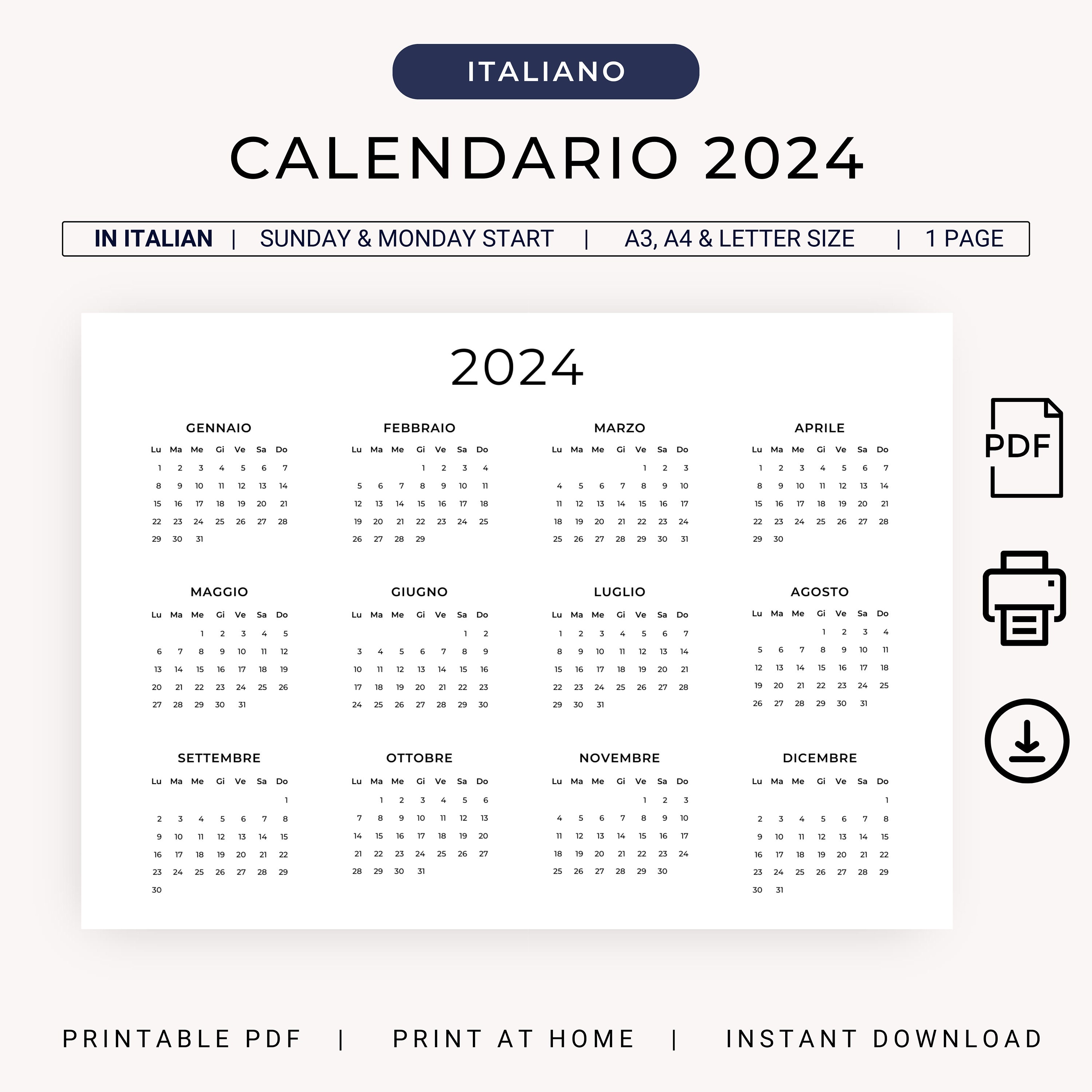 Calendario planner 2024 in PDF stampabile, calendario planner 2024